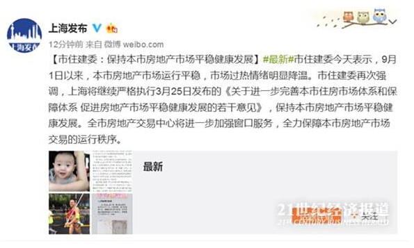 當晚,上海市住建委更是發布消息強調,上海將繼續嚴格執行3月25日發布的《關于進一步完善本市住房市場體系和保障體系促進房地產市場平穩健康發展的若干意見》,保持本市房地產市場平穩健康發展。
