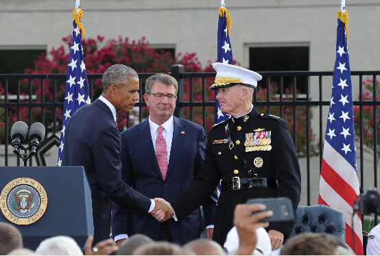 当地时间9月11日是美国“9·11”事件15周年纪念日,美国总统奥巴马出席在五角大楼“9·11”纪念园举办的纪念活动,为遇难者默哀,敬献花环,并面向全美发表讲话。国防部长卡特、美军参谋长联席会议主席邓福德陪同奥巴马出席活动,并各自发表讲话。