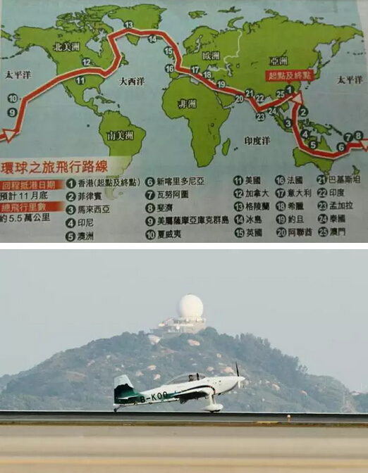 星岛日报报道:“香港起飞”了!首架于香港装嵌并获认证的小型飞机“香港起飞”,昨晨在机师郑楚衡及飞行工程师达仁的家人朋友、团队成员及特首等官员见证下,顺利从赤鱲角机场出发,展开为期3个月,全程55000公里的环球之旅。涂上狮子山彩绘的“香港起飞”昨在抵达首站菲律宾后,会继续飞越25个国家,预计于11月飞返本港。
