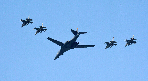 驻韩美军相关负责人说,美国展现严惩朝鲜挑衅意志的立场毫无变化。待天气好转,美军将向半岛出动B-1B等战略武器。