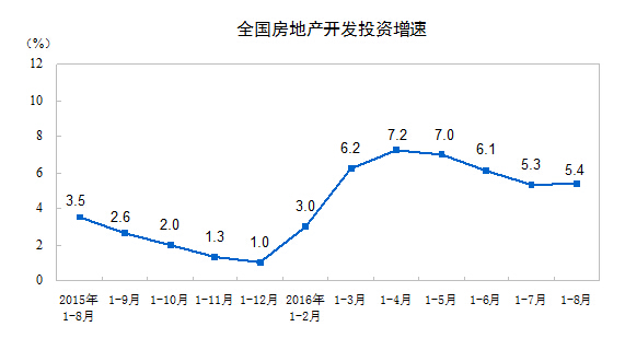 國家統計局13日發布8月份國民經濟運行情況。數據顯示,2016年1-8月份,全國房地產開發投資小幅回升,增速比1-7月份提高0.1個百分點。同時,商品房待售面積持續減少,8月末商品房待售面積70870萬平方米,比7月末減少512萬平方米。