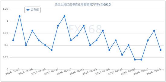 美國9月10日當周紅皮書連鎖店銷售年率增長0.4%