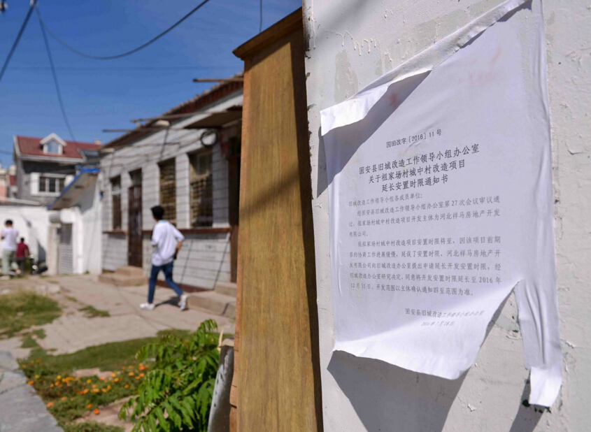 在祖家場村口,貼著一張落款時間為今年7月18日的《關于祖家場村城中村改造項目延長安置時限通知書》,落款單位為固安縣舊城改造工作領導小組辦公室,稱因該項目前期簽約協商工作進展緩慢,延誤了安置時限,開發主體祥馬公司向舊城改造辦公室提出申請延長開發安置時限,經該辦公室研究決定,同意將開發安置時限延長至2016年12月31日。據此,記者多方了解后獲悉,該地塊目前存在開發主體糾紛。