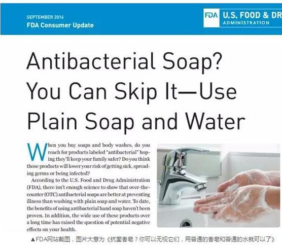 近日,美國食品與藥品管理局(FDA)宣布將全面禁售抗菌皂,稱抗菌皂與普通香皂相比,不僅抗菌效果沒有差別,還可能導致人體荷爾蒙紊亂。