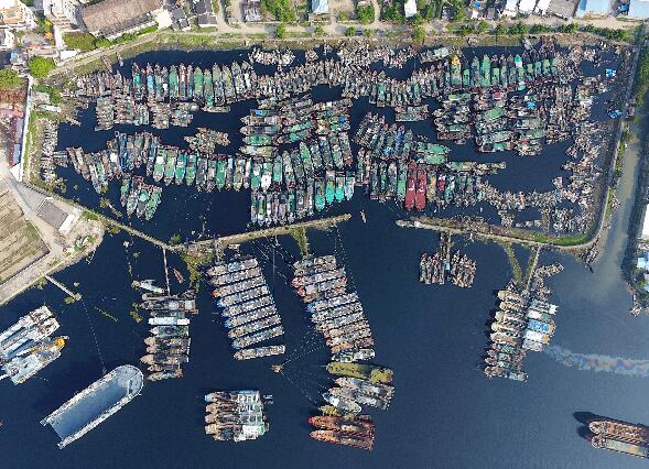 9月13日,渔船停靠在广东省汕头市潮阳区海门镇一处避风塘。 新华社