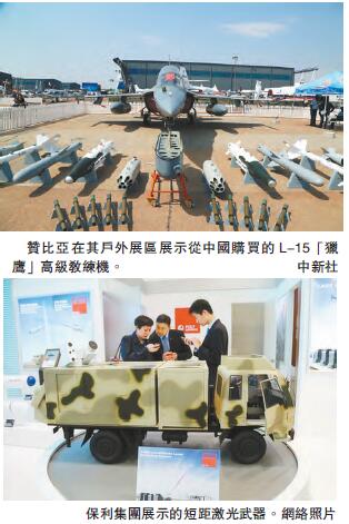 英國《簡氏防務週刊》報道稱,中國戰機成為了本屆防務展明星。中國和贊比亞軍方聯合組織L-15「獵鷹」高教機進行飛行表演,參加表演的是贊比亞軍方接收的首批此型飛機。
