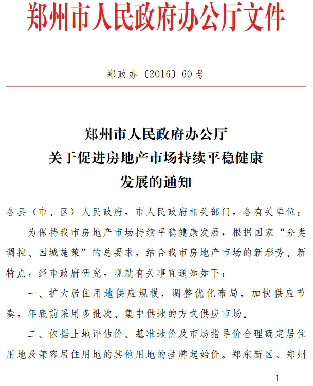 附:《鄭州市人民政府辦公廳關于促進房地產市場持續平穩健康發展的通知》