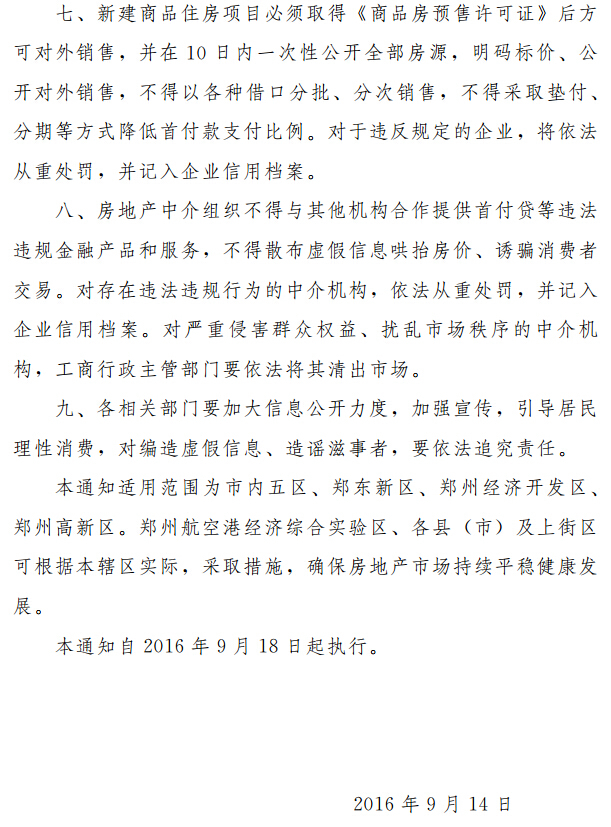 中秋節前夜(14日晚),在本輪地產行情中大出風頭的鄭州出臺了相關房地產調控政策(房九條)。