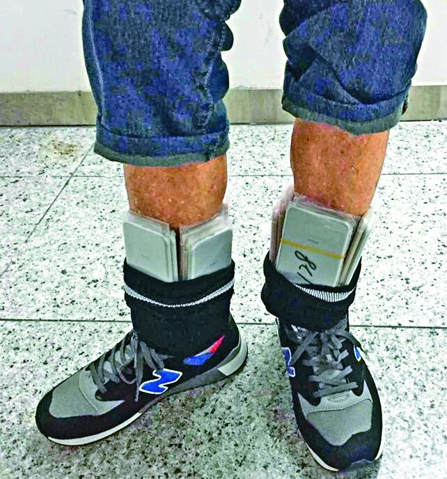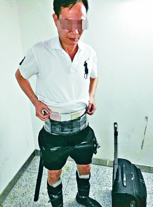 遭截获的水货客腰绑有多部iphone,企图瞒骗执法人员过关