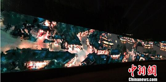 圖為夜晚的3D動態版《清明上河圖》。 蔣青琳 攝