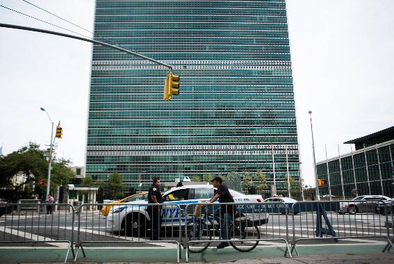 9月18日,警察在美国纽约联合国总部附近执勤。