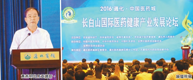 出席活動的吉林省政協主席黃燕明在講話中表示,吉林省是國家重點建設的中醫藥產業基地、生物藥產業基地和醫藥出口基地。醫藥健康產業總量近年來一直位居全國前5位,中成藥工業連續10餘年居全國首位。通化市醫藥產業總量和效益一直位居全省首位,佔據全省的半壁江山。舉辦本次論壇,旨在藉助論壇力量推動醫藥健康產業創新發展,希望大家圍繞通化市,乃至吉林省的醫藥健康產業發展,特別是醫藥健康產業全產業鏈建設,開展深入的交流探討,廣泛交流合作。通化市要以論壇為契機,加強合作、加快創新,充分發揮通化醫藥產業的集聚效應,努力在培育壯大醫藥健康產業方面實現更大的作為。