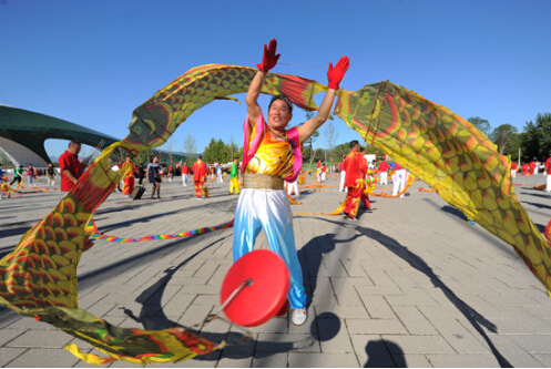 中新網9月20日電 昨日,首屆專屬中老年的50+藝術嘉年華在園博園啟動。據了解,本次活動吸引了近三千位中老年人共同參與,中老年柔力球、交誼舞、空竹舞龍表演以及時尚快閃等多個精彩互動環節輪番上演,現場所有中老年人還參加了寓健于樂的千人健步走。