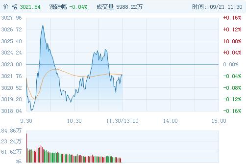滬指延續橫盤模式,截至午間收盤,滬指跌0.04%報3021點,深成指漲0.1%報10555點。