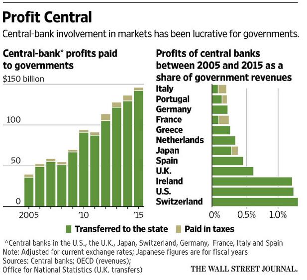根据《华尔街日报》(The Wall Street Journal)对央行数据的分析,八大发达经济体的央行去年向各国政府上缴约1,490亿美元,较2005年的400亿美元高出逾两倍。