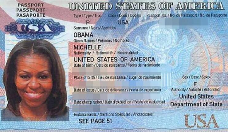 米歇尔的护照扫描档案遭黑客公开。(网上图片)