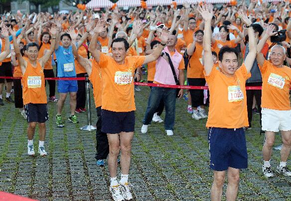 马英九当天一大早到台湾“总统府”前出席3公里路跑活动,媒体询问今年台湾没收到国际民航组织(ICAO)邀请函,马英九没有正面回应,只自顾自说“今天(跑步)成绩还可以。”