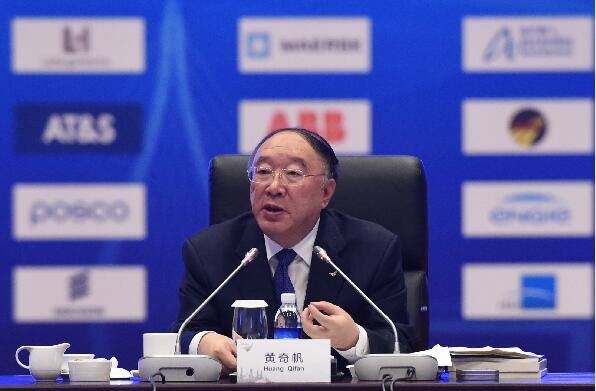 重庆市长黄奇帆为与会世界500强企业首脑及行业领先企业代表介绍,重庆把高质量发展现代服务业和战略性新兴产业作为自贸区试验特色。