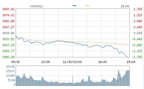 周一兩市低開低走,滬指再度失守3000點,板塊全線下挫,強勢股開啟殺跌模式,兩市超2300股下挫。截至收盤,滬指跌1.76%報2980.43點,深成指跌2.05%報10392.7點。
