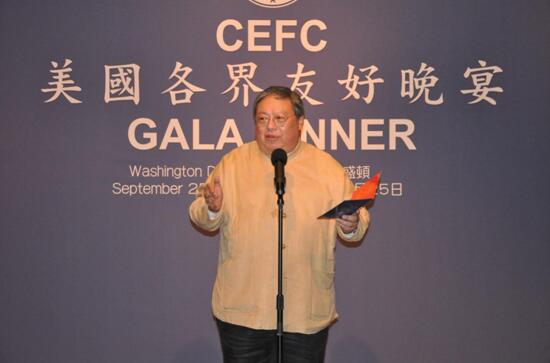 圖片一:何志平在晚宴中致辭,呼籲中美兩國互補短長,共同發展。