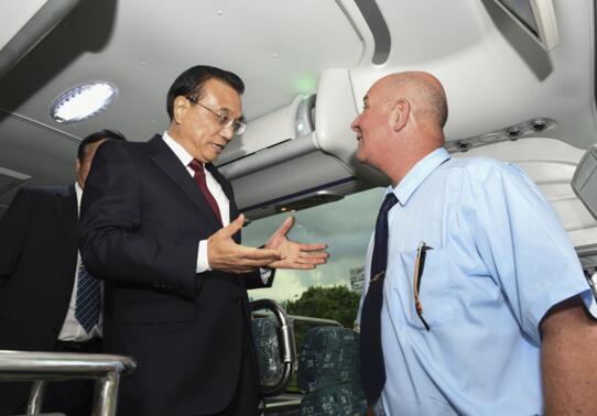 新華社哈瓦那9月25日電(記者 陳二厚馬桂花)當地時間9月25日下午,國務院總理李克強在古巴首都哈瓦那體驗中國出口的宇通客車,考察中國裝備“走出去”情況。