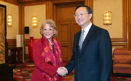中国国务委员杨洁篪27日在北京中南海会见埃及总统安全事务顾问纳佳。