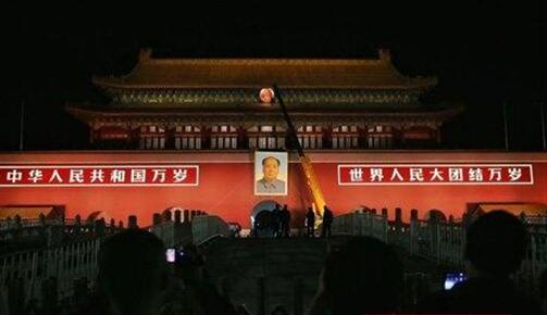 几分钟后,新绘毛主席画像被悬挂在天安门城楼中央,23点23分,更换工作完成。整个换像过程持续了40多分钟。