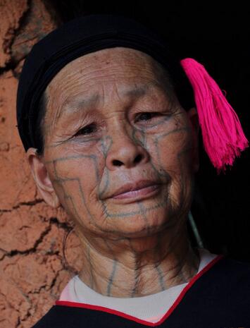 据悉,古时候这些部落的女子因美丽闻名,因此会有歹徒潜入村中侵犯女性。为了解决这个问题,部落长老下令在少女的面部刺青,以降低她们的吸引力。渐渐地,这个传统在村庄内根深蒂固,反而成为了美的标志。从上世纪50年代,这个传统被官方正式取缔。随着时间的推移,依然遵循这个传统的女性变得像活化石一样珍贵稀少,吸引着猎奇的人们的目光。
