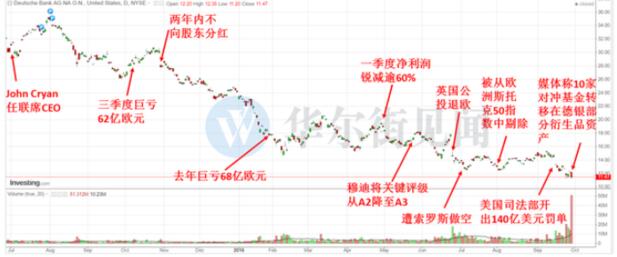 昨日,媒體報道與德銀有業務往來的大約10家對沖基金,已將在德銀的部分衍生品資產轉移至其他機構。隨后,德銀在紐約交易的股票價格收盤下跌6.7%,盤中跌幅一度超過9%。