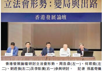 【香港商報網訊】記者林駿強報道:新一屆立法會任期今日開始,并會於本月12日召開首次會議。「香港發展論壇」昨日舉行研討會,分析立法會新形勢。兩位候任的立法會議員出席,其中民建聯副主席周浩鼎估計,新一屆議會將繼續劍拔弩張,但希望不同陣營的議員能就民生議題討論;周浩鼎亦期望新一任立法會主席能適時「剪布」,又期望來屆議會能修改議事規則,制止「拉布」;另一候任立法會議員何君堯則稱,法治是本港核心價值,本港無論在議會里外,都要「以法治港」。
