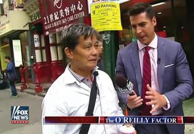 福克斯(Fox)电视台新闻频道政治评论节目 —— “奥莱利实情”(The O'Reilly Factor)周一晚播出一段在纽约华埠街头采访的视频,期间38岁的主持人Jesse Watters手持话筒,向多名华人提出具有种族歧视意味的问题。