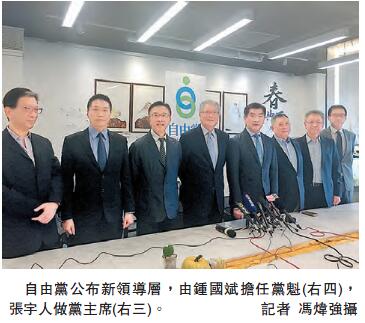 自由黨黨領導層選舉於上月底展開,截至昨日提名截止時,只接獲一張有效提名表,按黨章規定,該份名單的候選人自動當選,新當選領導層即日生效。新領導層分別為:黨魁鍾國斌、黨主席張宇人、副主席分別為邵家輝、胡漢清、李鎮強。