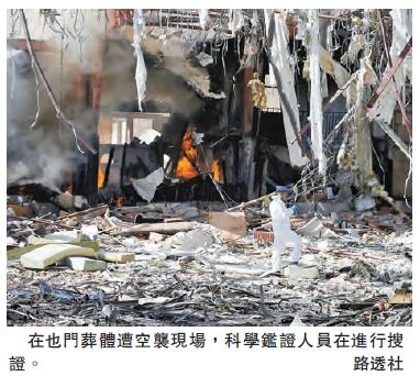 法新社报道称,有目击者表示,沙特为首的多国联军战机空袭期间,萨那正举行大型丧礼,大批出席葬礼的人群成为空袭的受害者。救援人员搜救出多名死伤者。据称,由胡塞武装任命的官员及前总统萨利赫当时正在仪式进行的场地内。美联社更引述目击者的话说:「空袭之後,上百具屍体散落在礼堂外,救援人员甚至要将他们一块块地收回来。」