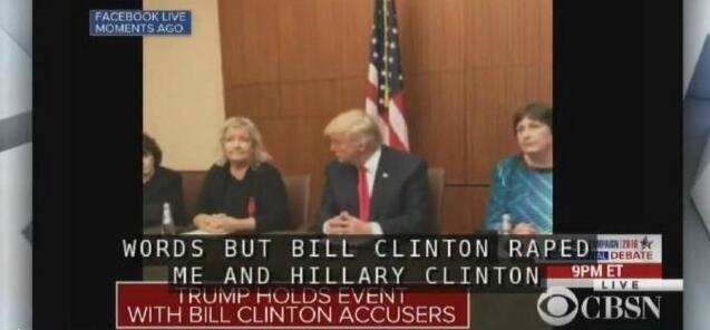 特朗普劍走偏鋒:把克林頓的老情人們都請來辯論了。就在距美國大選候選人第二場電視辯論還有一個小時之際,特朗普邀請曾指控克林頓性侵犯了她們的四名女性召開記者會。其中Jones、Willey和Broaddrick都將出現在辯論大廳。