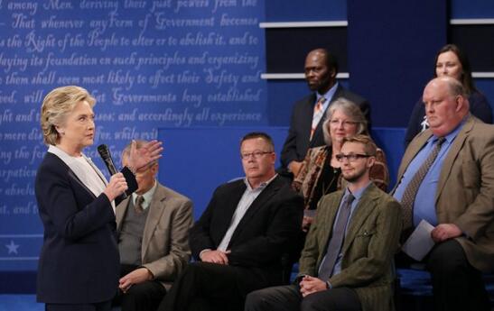 據美國新聞網站Quartz 8日報道,現場參加辯論的40名現場觀眾,是由專門負責意見調查的Gallpo公司從尚未確認自己候選人傾向的選民中挑選。總統辯論委員會成員詹妮特·布朗(Janet Brown)在接受媒體采訪時表示,主持人的提問將最大程度的覆蓋所有重要的話題,現場40名觀眾中至少會有8人得到提問的機會。