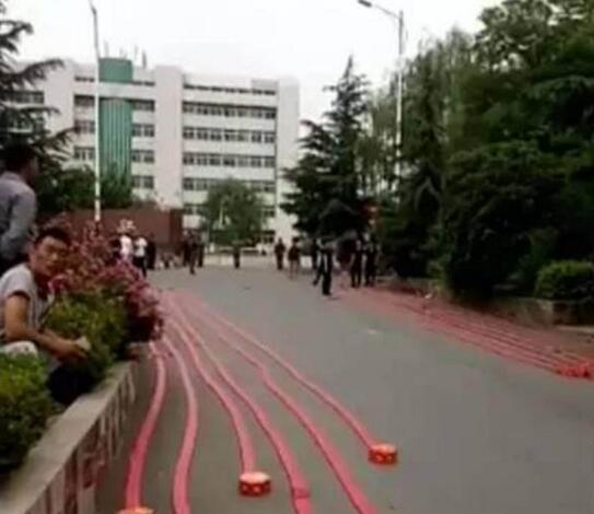 晉城監獄門口,至少10余盤鞭炮擺放在監區門口的路上迎接刑滿釋放人員程幼澤。