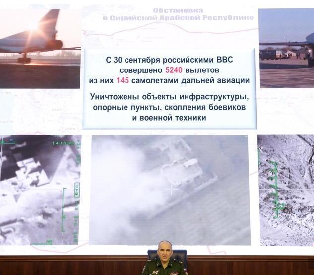 資料圖:當地時間2015年12月25日,俄羅斯總參謀部高官Sergei Rudskoy在莫斯科出席新聞發布會,對俄羅斯在敘利亞空襲情況進行簡報。