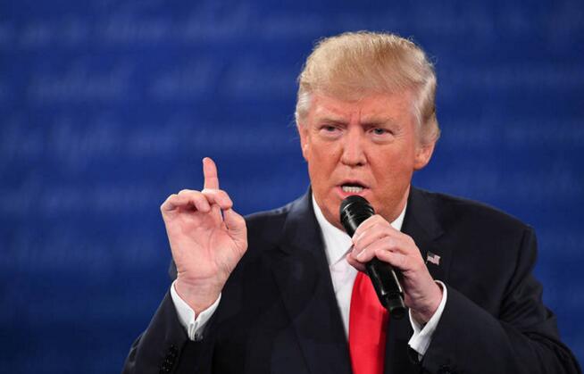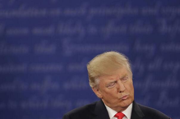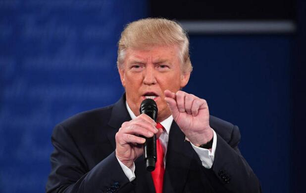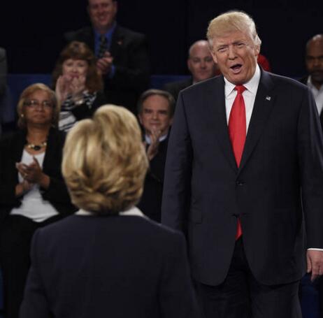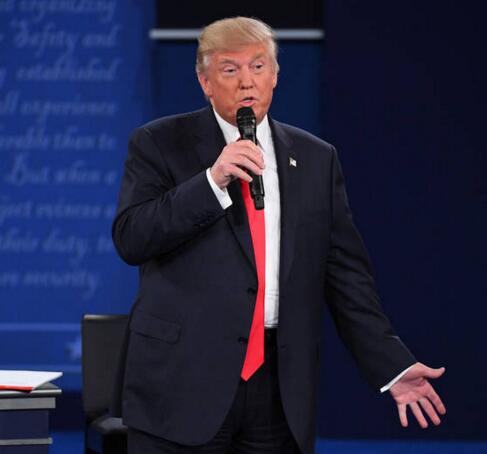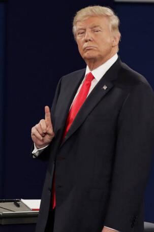 當地時間2016年10月9日,美國圣路易斯,美國共和黨總統候選人特朗普在華盛頓大學展開第二場電視辯論中。