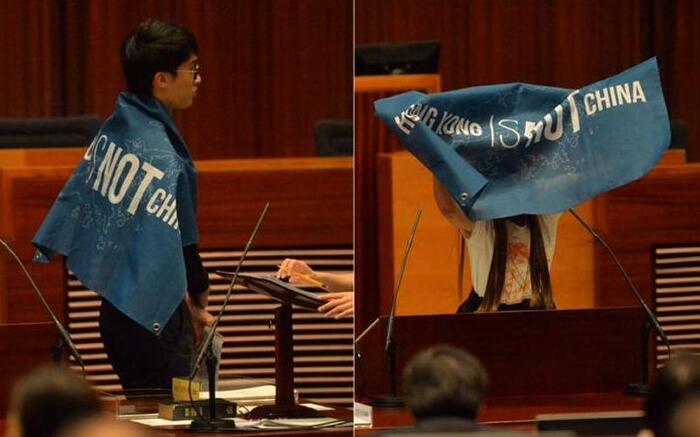 青年新政梁頌恆,就以英文宣誓,並為誓詞加插「keeping guard over the interest of the Hong Kong Nation」的字眼,把China讀成「支那」,被立法會秘書長陳維安指無權為他監誓,要求他返回座位,但梁頌恆堅持自己「未讀完」。他期後披有寫上「Hong Kong is not China」的旗幟,再讀誓詞,但未為陳維安接納,要求他返回座位。