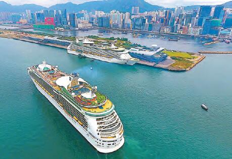 【香港商報網訊】全球最大郵輪品牌皇家加勒比再次為香港郵輪發展締造歷史性一刻。旗下兩艘世界級旗艦郵輪「海洋航行者號」(Voyager of the Seas)及「海洋水手號」 (Mariner of the Seas),昨日首次匯聚香港(上圖),是啟德郵輪碼頭啟用以來,首次有兩艘排水量達13.8萬噸的郵輪同時停泊,標誌香港郵輪旅遊踏進新里程碑。