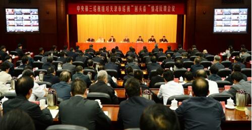 中央第三巡視組向天津市委反饋巡視“回頭看”情況。圖片來源:中央紀委監察部網站