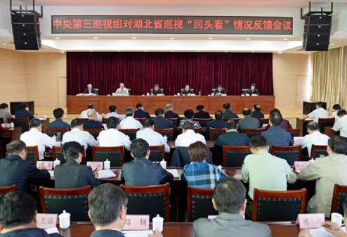 中央第三巡視組向湖北省委反饋巡視“回頭看”情況。圖片來源:中央紀委監察部網站