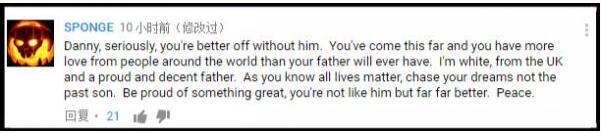 也有人勸說丹尼放棄認親:“丹尼,講真,沒他更好。你已經努力了這么久,人們給了你這么多支持和愛,這是你的父親永遠不會給你的。我是個英國白人,我也是個驕傲體面的父親。你知道,眾生平等,追求你自己的夢想吧,不要執念于認他作父。你不是他,你比他好太多了。祝好。”