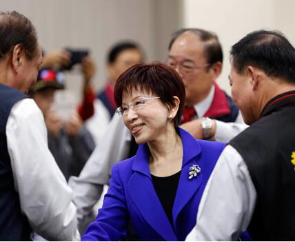 資料圖:國民黨主席洪秀柱(中) 中新社記者 張一凡 攝