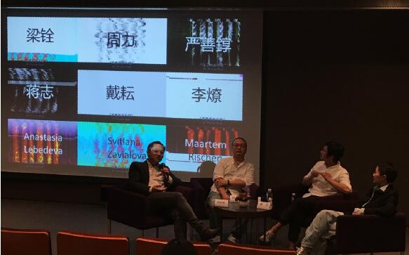 於10月12日舉行的新聞發布會上,策展人鄧彬彬與參展藝術家周力、戴耘 、李燎共同面對媒體解說創作理念。