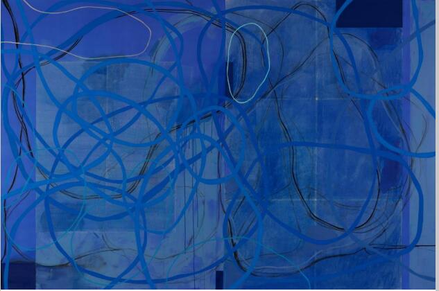 女藝術家周力的作品以綜合媒介繪畫和裝置為主,在不局限於材料形態的同時,堅持著個人美學脈絡和藝術思想的延伸。她的作品兼具歐洲的浪漫氣質和中國的剛勁飄逸;在探尋當代美學疆域的同時,展現出博大的人文關懷。女艺术家周力帶來抽象作品《藍色戀人》,不規則的線條千變萬化,卻都在規則之內。從小學國畫的周力將書法、音樂、節奏、旋律等融入作品中。