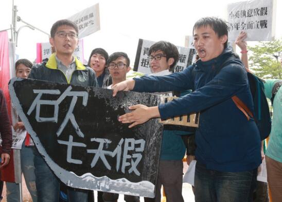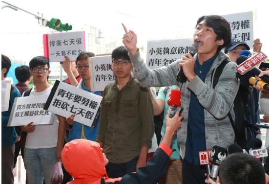 綜合臺灣媒體報道,“小英執意砍假,青年全面宣戰!”不滿蔡英文拍板年底前要完成“一例一休”的修法,學生團體認為,蔡英文當局執意要將勞工七天假日砍掉,只是在圖利資本家,變相砍年輕打工族的薪水,四十多個青年團體今天赴民進黨中央黨部抗議。