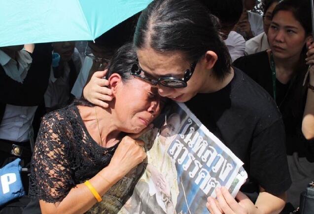 據泰國頭條新聞報道,10月14日上午10點,曼谷詩力叻醫院已經有大批民眾聚集在醫院送別國王,其中大部分人從昨晚開始便一直在守在醫院,沒有離去。記者采訪到了兩位民眾,他們表示:“從昨天看到新聞發布會,知道國王去世的事情 ,我覺得非常傷心 ,傷心得不知道怎么辦了,連飯都吃不下,就馬上出門趕來詩力叻醫院。從昨天晚上八點到醫院就一直都在這里等。我一直都在關注國王的病情,以前國王住院時我都會來醫院為國王簽字祈福。我很愛國王,因為他為我們泰國人民做了很多事情。”