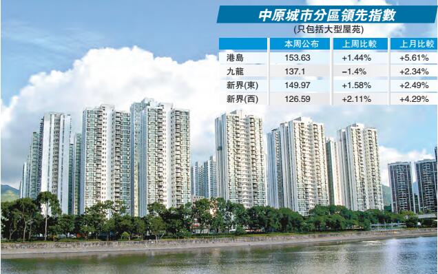 據中原地產研究部公布,本周中原城市領先指數(CCL)報141.77點,按周升0.52%,指數由去年高位(146.92點)至今的跌幅,已進一步收窄至3.5個百分點。而向來備受買家熱捧的新界東及新界西,兩區樓價指數按周分別升1.58%及2.11%,報149.97點及126.59點,分別創下逾一年及近一年新高,目前兩項指數距離歷來高位僅2.82%及2.21%。