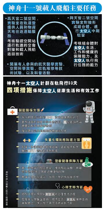【香港商報網訊】中國神舟十一號載人飛船將在太空飛行33天,時間長度屬於中長期。中國載人太空工程新聞發言人武平昨日在酒泉衛星發射中心舉行的發布會上說,太空人這33天的天上生活「豐富多彩、很有看頭」。